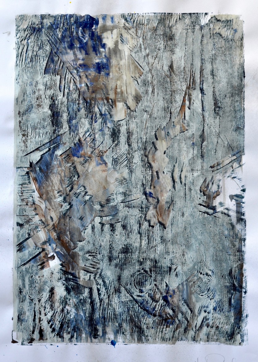 2013 aus der Serie "into the trees" Holzschnitt Mischtechnik auf Papier 100 x 70