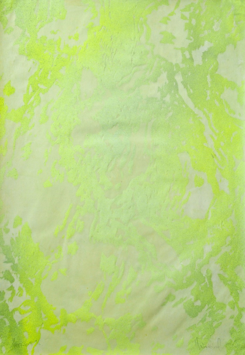 2014 aus der Serie "into the trees" Holzschnitt Mischtechnik auf Papier 100 x 70